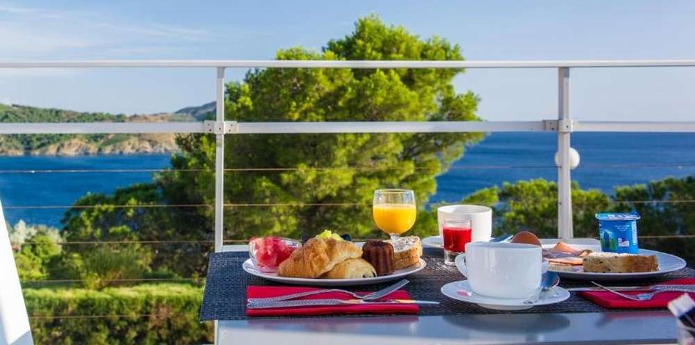 The hotel overlooks Banyuls-sur-Mer and offers stunning views of the bay. Calm and comfortable, it features bright rooms with balconies, perfect for enjoying the scenery. Two swimming pools and a wellness area provide relaxation after an active day. The restaurant serves simple and flavorful Mediterranean cuisine. A great choice for a restful stay, including for cycling travelers.