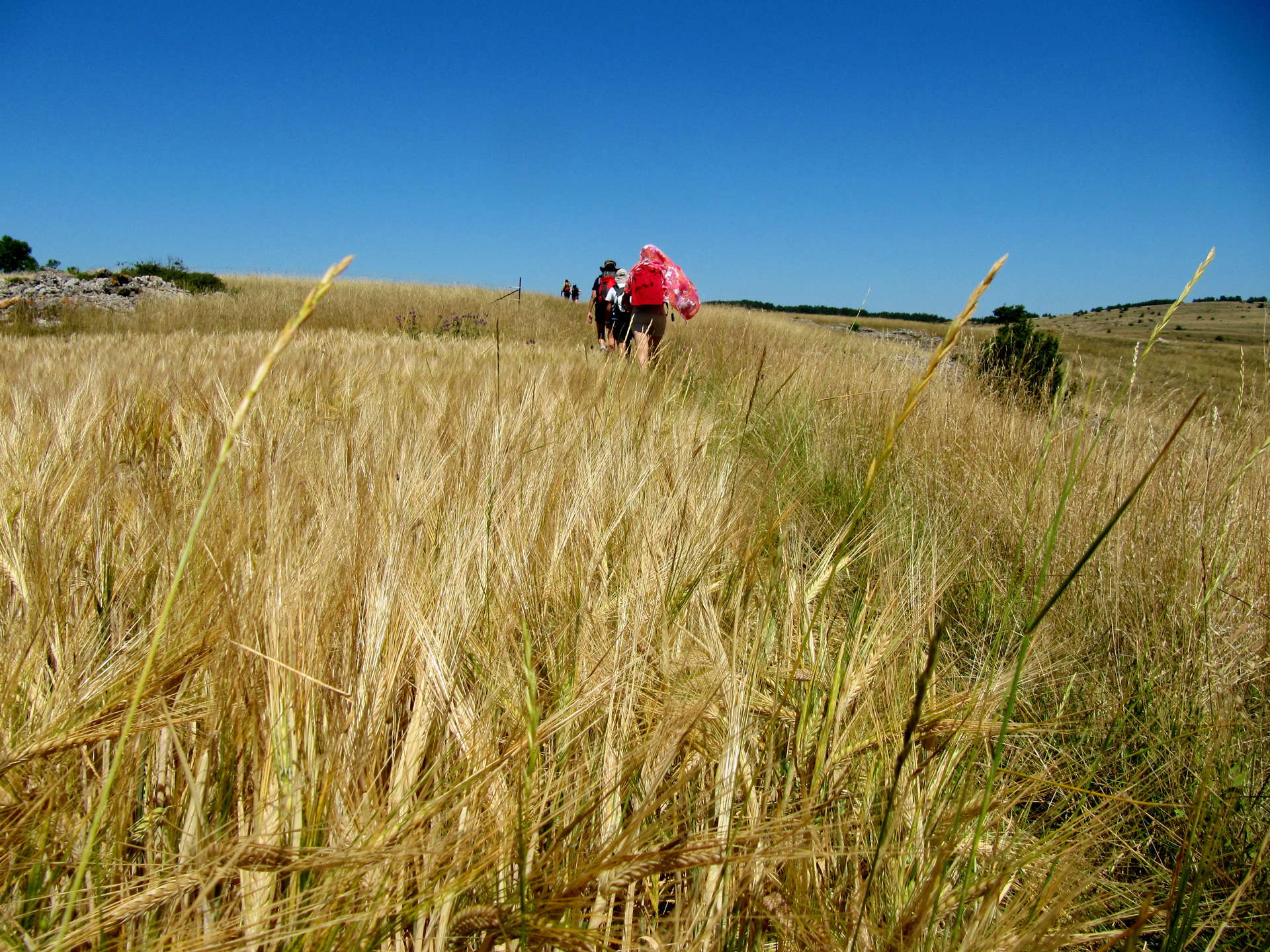 Ce matin, le chemin de St Guilhem prend de la hauteur jusqu'aux corniches des gorges de la Jonte, en compagnie des vautours. Vous surplombez de toute sa splendeur le canyon et les eaux limpides des gorges de la Jonte. Vous traversez ensuite le causse par les sentiers de transhumance. Ces sentiers caussenards, couverts de cheveux d’anges, sont bordés de buis, de genévriers et de murs de pierres sèches. Diner et nuit en gîte sur le Causse Méjean.